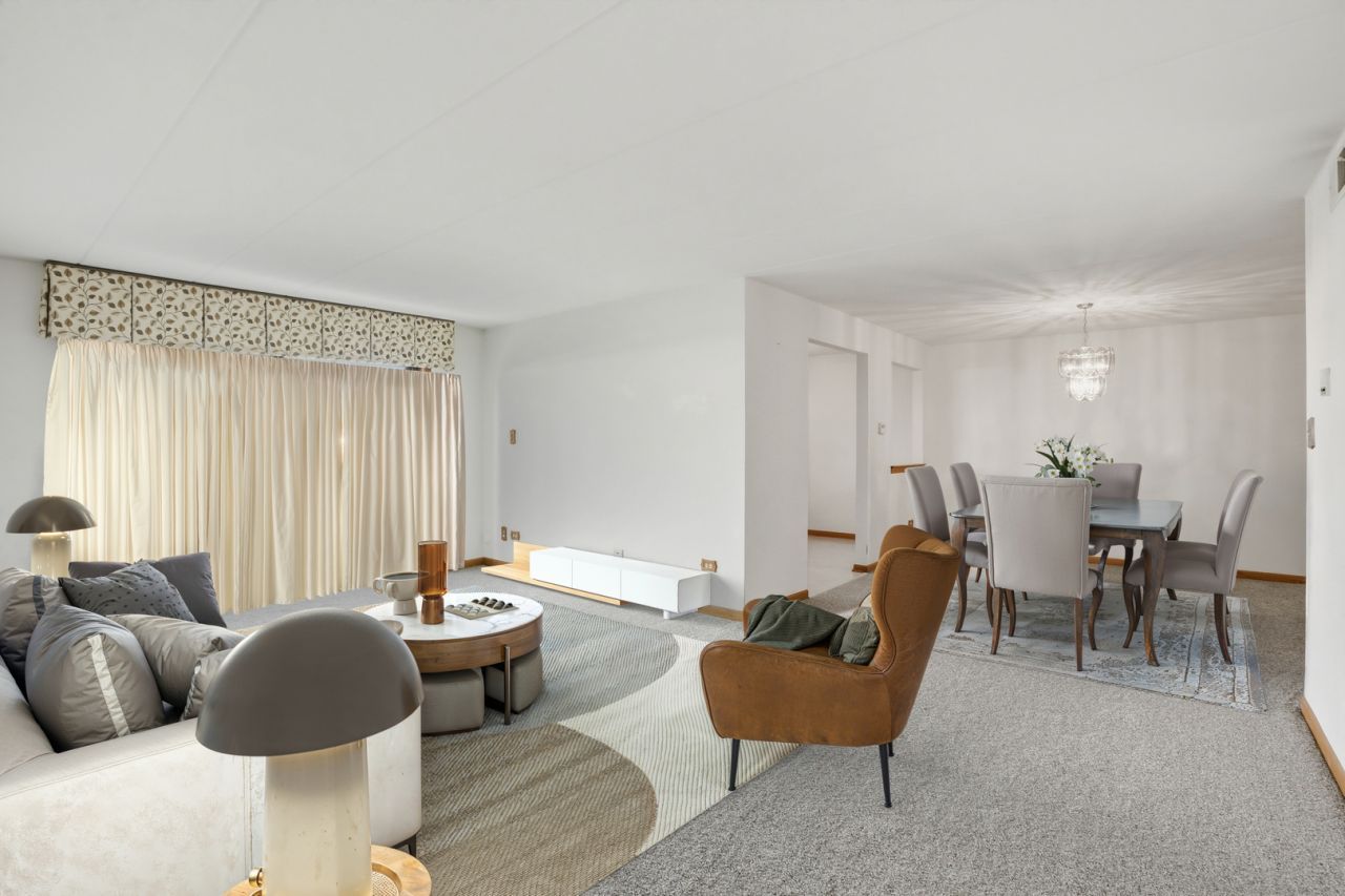 Desirable first-floor condo with no stairs and an inviting open floor plan! This sun-filled home features a spacious living room with a door leading to the covered patio, perfect for relaxing or entertaining. The kitchen offers oak cabinets, stainless steel appliances, and newer refrigerator (2021) and dishwasher (2023). Enjoy both a large dining room and a separate eat-in kitchen, providing plenty of space for everyday living and gatherings. The primary suite boasts a walk-in closet and private bath with shower. There are two bedrooms and two full bathrooms, plus a convenient in-unit laundry room complete with sink and cabinets. Additional highlights include an extra deep one-car garage with storage space and many updates: roof (2024), garage roof & gutters (2025), water heater (2022), carpet (2026) and furnace & A/C (2013). Residents also enjoy rentable access to a wonderful clubhouse available for private use, accommodating up to 50 guests. The clubhouse features a serving bar, kitchen, restrooms, and tables for resident use, making it perfect for parties, gatherings, and special occasions. Easy, low-maintenance living in a highly desirable first-floor location!