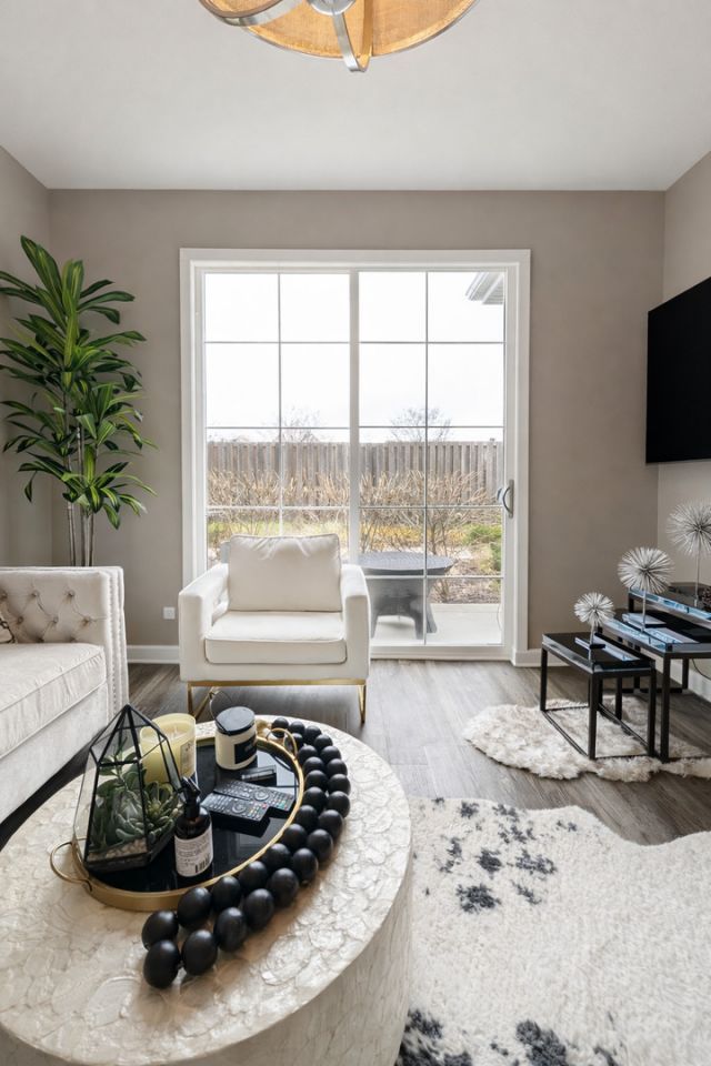 Luxury living awaits in this beautifully maintained 3 bedroom, 2.5 bathroom townhome in Glenview, built in 2018. This impressive home offers a bright, open-concept layout, upscale finishes, and stylish modern design throughout. The main level features rich dark flooring, abundant natural light, and a seamless flow between the living, dining, and kitchen areas, making it ideal for both everyday living and entertaining. The stunning kitchen is the heart of the home, showcasing white shaker cabinetry, quartz countertops, stainless steel appliances, subway tile backsplash, a large center island with sink, and elegant designer pendant lighting. Sliding glass doors lead to a private outdoor space, perfect for relaxing or enjoying your morning coffee. A chic powder room on the main level adds both convenience and style. Upstairs, you'll find spacious bedrooms and beautifully finished bathrooms with sleek vanities, quality fixtures, and a clean contemporary aesthetic. The luxurious primary bath features a double vanity, oversized mirror, and a large glass walk-in shower with marble-look tile. A generous walk-in closet with built-in shelving and drawers offers excellent storage and organization. Built with today's buyer in mind, this newer luxury townhome combines modern elegance, functional living space, and a highly desirable Glenview location.