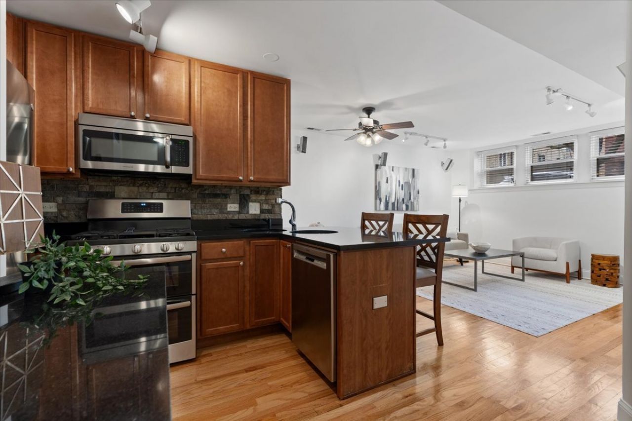 Welcome to 1525 W Cullom Ave, a charming 2 bed / 2 bath garden home tucked away on a quiet, tree-lined street in the heart of Graceland West / Lakeview-one of Chicago's most beloved neighborhoods. This inviting residence features hardwood flooring throughout, high ceilings, and a bright open-concept living and kitchen layout that makes the space feel both comfortable and functional. The kitchen is equipped with newer stainless steel appliances, perfect for everyday cooking or entertaining. Both bedrooms are generously sized, and the primary suite offers a private en-suite bath with a sleek glass-enclosed walk-in shower. Additional highlights include in-unit washer and dryer, a new furnace, and extra storage. Enjoy the best of neighborhood living with easy access to everything Lakeview has to offer. Just steps from the Ashland bus and only four blocks to the CTA Brown Line at Montrose, commuting around the city is effortless. Spend weekends exploring nearby local cafes, restaurants, grocery stores, and boutique shops, or take advantage of the beautiful parks and vibrant community feel that make Lakeview so desirable. Pet-friendly and perfectly positioned, this home offers a wonderful blend of comfort, convenience, and neighborhood charm. Welcome home!