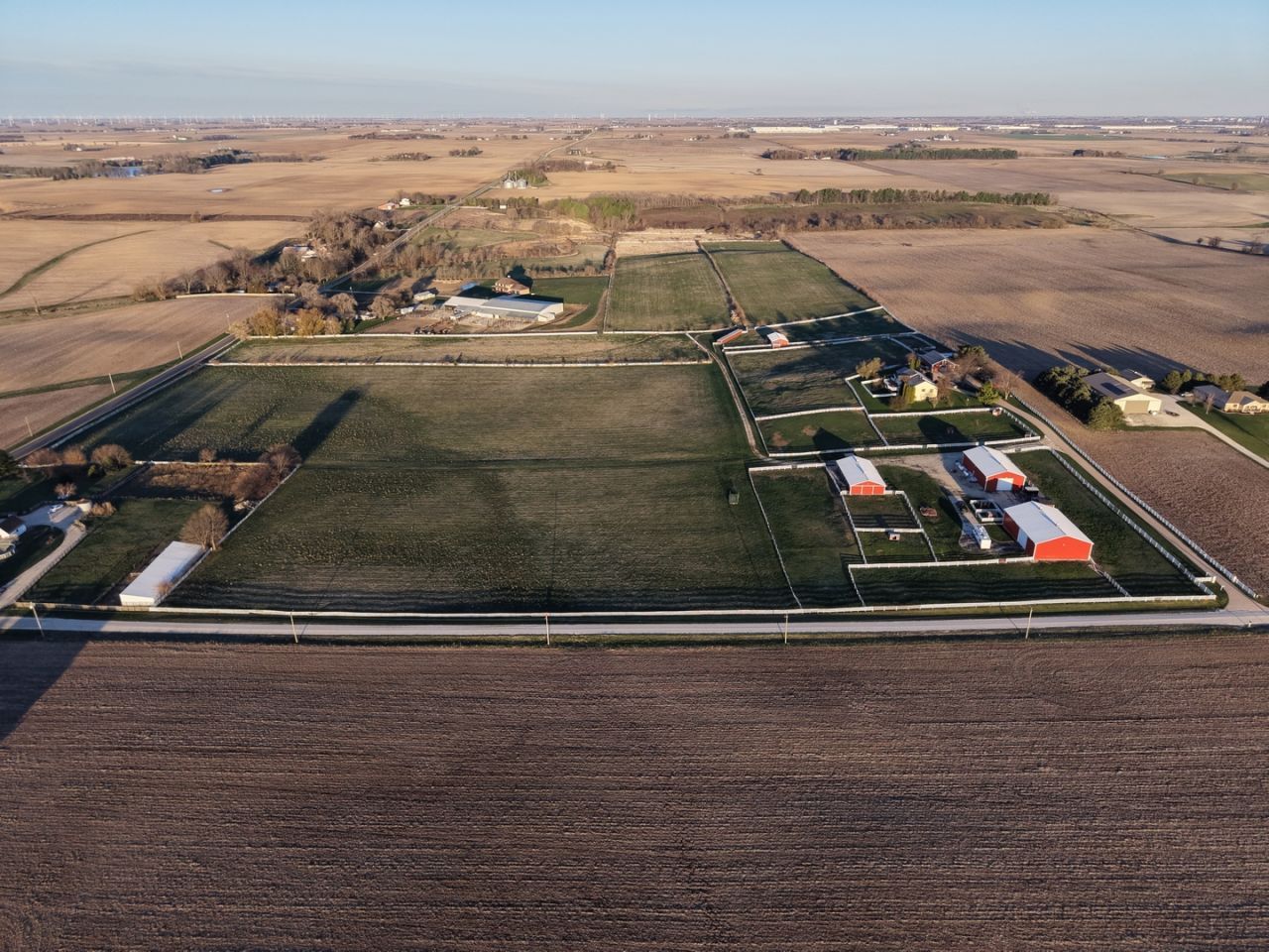 Discover your opportunity with this rare gem: a stunning 5 bedroom, 3.5 bathroom custom walk-out ranch home perched atop the highest elevation in DeKalb County. Set on 50.04 +/- picturesque acres of gently rolling countryside, this fully fenced and gated property offers privacy, breathtaking views, and exceptional functionality for horses, farming, or country living. The 3,500 square foot home features a spacious gourmet kitchen with plenty of countertop space and abundant wood cabinets for plenty of storage, including a large island. You will enjoy a first-floor laundry room, a luxurious primary suite with walk-in closet, an open floor plan perfect for everyday living and entertaining, and a spacious attached 2-car garage. The massive deck off the family room and kitchen provides the ideal spot for morning coffee or evening relaxation, overlooking sweeping southern views across the estate. The fully finished walk-out basement includes a huge 19'x27' rec room which seamlessly opens to a 15'x19' TV/movie space-ideal for family gatherings or quiet nights in. Step outside to a large patio that leads to a fenced backyard oasis with landscaped planting beds and productive peach, apple, and pear trees that yielded fresh fruit last season. The 50.04 +/- acres include easily accessible, gently rolling tillable (37 acres +/-) currently in hay and pasture ground (11 acres +/-) with a strong average Productivity Index (PI) of 133.3-prime DeKalb County soil known for productivity. Convenient Location & Commuter Access Just 2 miles from I-88 (Ronald Reagan Memorial Tollway) for quick access east to Chicago or west toward the Quad Cities. Approximately 10 minutes to the Elburn Metra station (Union Pacific West Line) for daily commuter trains to Chicago's Ogilvie Transportation Center. Premier Equestrian & Farm Infrastructure This turn-key horse property includes two well-built horse barns with a combined 23 stalls: -Stable #1: 32' x 64' with 11 stalls and a hay loft near the house -Stable #2: 35' x 70' with 12 stalls across from machine shed and hay barn Both barns feature concrete floors with 3/4 rubber cow mats in every stall, running water, and electrical outlets. Additional outbuildings include: -Hay Barn: 50' x 72' with raised platforms for dry, elevated storage -Machine Shed: 40' x 70' heated machine shed with concrete floor, water, drains, and drive-through doors on both ends -Shedrow Barn: 33' x 45' located SW of the house -Large Storage Sheds: both with concrete floors. Shed 1 (12'x18') located north of drive across from house and Shed 2 (16'x16') located between the machine shed and the hay barn -Coops for chickens, turkeys, or geese attached to Barn #1 and southwest by the shedrow barn Whether you're seeking a private family retreat, a professional equestrian facility, or a productive hobby farm, this one-of-a-kind property delivers it all. A rare combination of luxury living, panoramic views, and top-tier agric