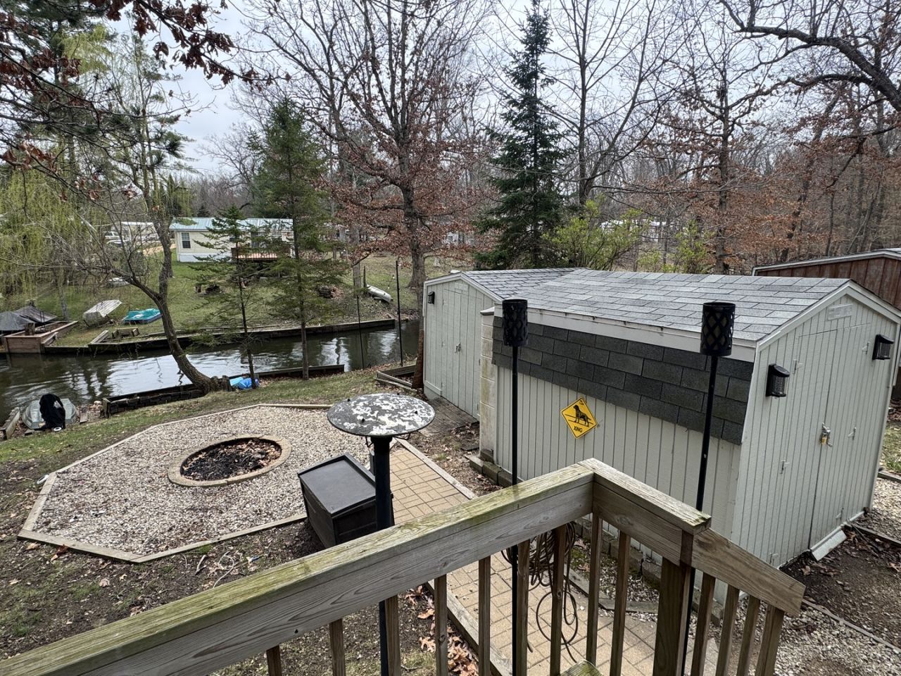 Beautiful Bass Lakeview Retreat - Move In & Start Enjoying! Don't miss this charming lakeview property-perfect for fishing, boating, relaxing, and making memories. This well-maintained getaway is truly move-in ready and offers everything you need to start enjoying lake life right away. The 2002 Trophy Park Model includes skirting, central air and heat, a water heater, and comes fully furnished with all appliances, including a washer and dryer. Inside, you'll find 1 bedroom, 1 bathroom, and a spacious room addition perfect for entertaining guests. There's plenty of sleeping space throughout, including bunk beds and a couch, making it ideal for hosting. The property features a gravel driveway, attractive landscaping, and a welcoming front deck with a roof-ideal for morning coffee or evening relaxation. Two freshly painted sheds (2021) provide great storage space. Step out back to enjoy the covered deck with a gorgeous view of the lake. Outside, unwind around the nicely finished fire pit area with gravel, firewood, and thoughtful landscaping. Additional features include an LP tank, outdoor furniture, and lights. Winter water is available. (has not been used by current owners). A must-see property that won't last long-come experience lake life for yourself! Please note that Woodhaven Lakes is a gated recreational community and cannot be used as a primary residence or homestead. You must be accompanied by a broker to view any properties, YOU CANNOT ACCESS THE CAMPGROUND WITHOUT A PASS. The property owner pays the association fees.