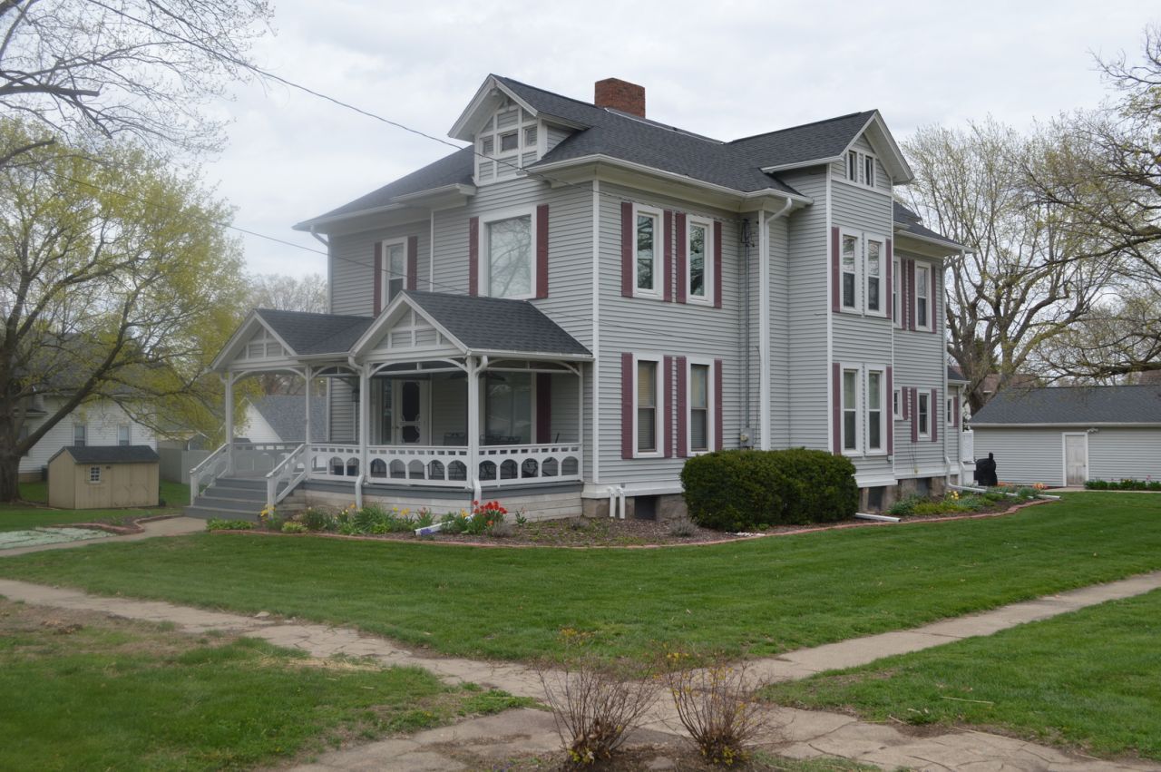 Every home has a story - and this one has more than century's worth of them. For over 140 years this beautiful old soul has stood strong on the corner of Main Street, watching seasons and generations come and go. Beautiful 4-bedroom 2.5-bathroom Victorian loaded with character and updates!! Inside, you'll find original hardwood floors, beautiful crown molding and handcrafted woodwork that whisper tales of the past: kids racing towards the kitchen, friends gathered for coffee, late-night conversations turning into laughter. The charm here is the kind you simply don't find anymore. Boasting over 2,800 square feet of living space this old soul has a welcoming foyer with beautiful glass doors and a perfect little nook under the gorgeous staircase. What was once the parlor is now the cozy living-room, and it connects to the large family room with the decorative fireplace and beautiful shelving/display area. You will love the large, updated kitchen with newer appliances and the laundry room located right of the kitchen. Also, right off the kitchen overlooking the backyard is the wonderful 3 season room with its own fridge. And while the layout and charm are timeless, the systems are modern and reliable: new roof in 2022, new water heater in 2024 and new water softener in 2014, hot water heat and central air, whole home Generac generator (serviced annually), professionally waterproofed basement (inspected annually) and a professionally bat-proofed, cleaned and sanitized attic. Inground dog fence system and collar can stay with the property. The yard is a large corner lot(2 lots total) with a detached 2 car garage and a storage shed. This home sit in a truly great location - walking distance to the grocery store, coffee shop, Reds Bar and Grill, the park and splash pad, the library and more. Main Street living means convenience, community and that small town charm you cant manufacture. If you are looking for a home filled with history, character, charm and modern comfort make an appointment today