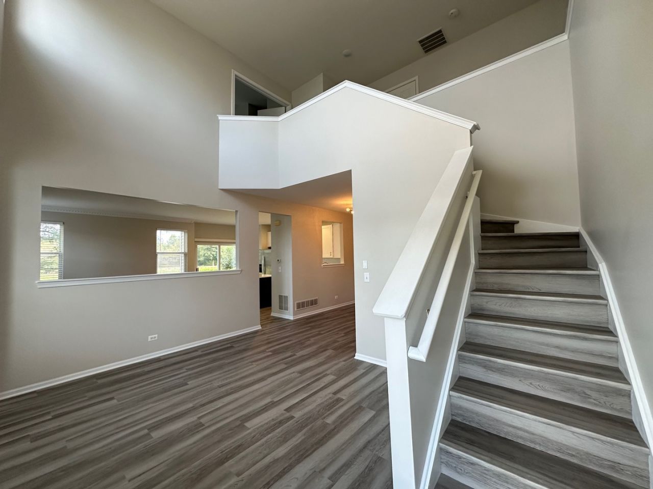 Beautiful end unit townhouse with 3 BR, 2.1 BA, 2-car garage & a full finished basement and incredible pond view! 2-story open design in the living room, very light and bright! Freshly painted with trendy color! Interior totally remodeled with new vinyl plank floor and new carpet in the basement; brand new kitchen with all white cabinets, quartz countertop and stainless steel appliances! Master suite with vaulted ceiling, brand new master bath and WIC! Basement is finished with rec room and media room! Pond view from family room, breakfast room and master bedroom, lovely and relaxing! Minimum 1 year lease! No pets! Minimum credit score of 680. Available now! One of the nicest rental property on the market!