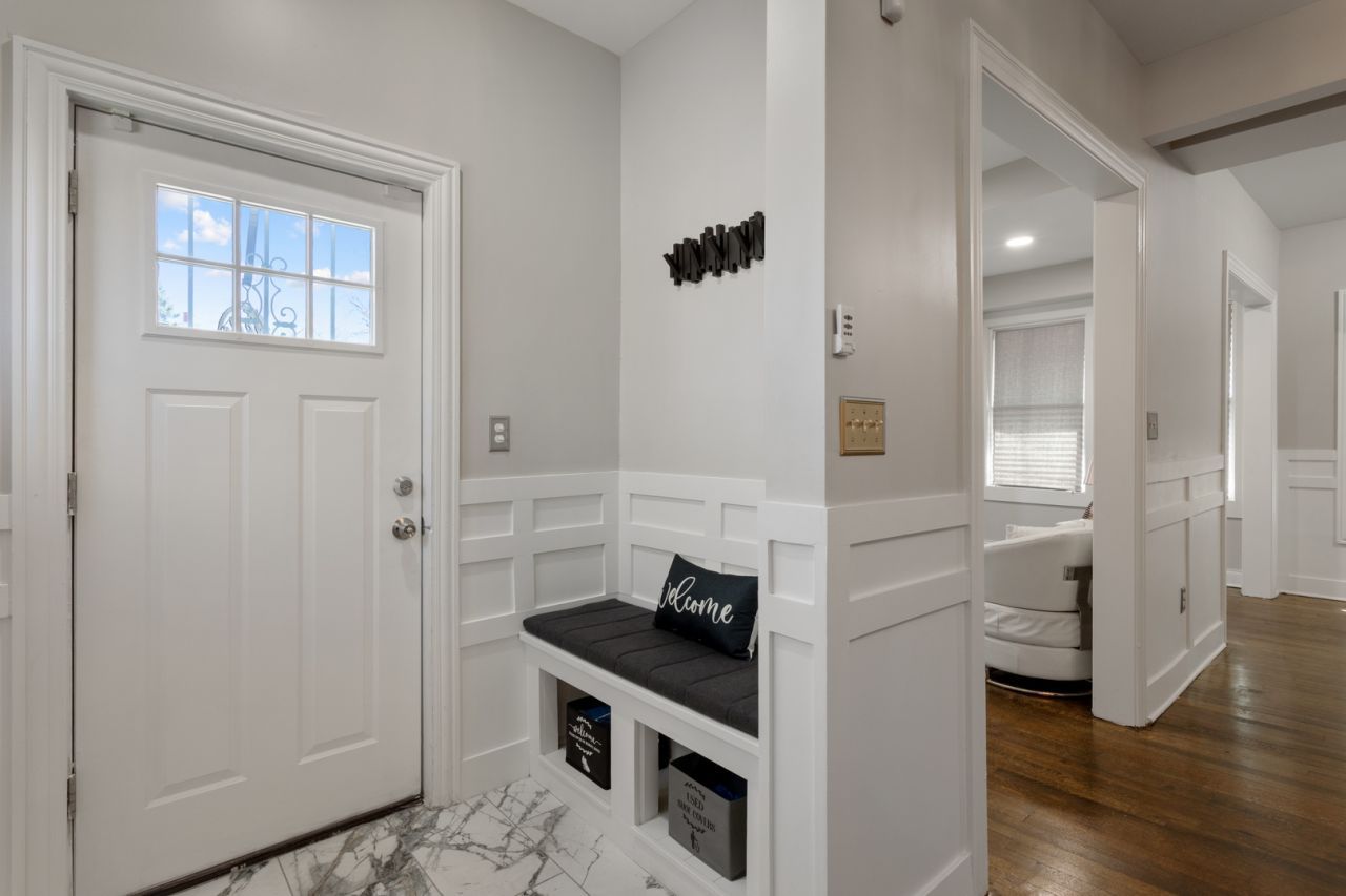 Welcome home to this beautifully rehabbed South Shore gem, ideally located just 20 minutes from downtown Chicago and 10 minutes from the highly anticipated Obama Presidential Center. This spacious and versatile home offers a thoughtfully designed floor plan, an expansive backyard, a fully finished basement with epoxy flooring, and a one-car garage. Featuring 5 bedrooms and 4 full bathrooms, the home is filled with natural light and elevated by modern finishes throughout, including a decorative accent wall. The chef's kitchen boasts custom cabinetry, quartz countertops, stainless steel appliances, and generous storage. The main level includes a sunroom, two bright, generously sized bedrooms and a full bath. Upstairs, the luxurious primary suite offers a walk-in closet and spa-inspired bathroom, along with an additional sun-filled bedroom featuring its own en-suite bath. The finished basement adds even more flexibility with space for a theater, gym, or recreation area, plus an additional bedroom-ideal for a home office-and a full bathroom. Stylish, spacious, and perfectly located, this exceptional home is move-in ready and waiting for its next owners. A/C unit will be installed prior to closing. Broker has ownership.